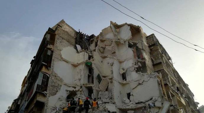 بعد أن انهار بناء في حي صلاح الدين في حلب، والذي أدى إلى مقتل 11 شخصاً من ساكنيه، تحركت ماكينة إعلام النظام، لتتحدث عن كارثة تنتظر مباني المدينة، والتي أشارت بحسب دراسة لمجلس المدينة، بأن أكثر من 85% من مباني حلب الطابقية، متصدعة، وأن أكثر من 80 ألف مبنى طابقي معرض للانهيار في أي وقت.