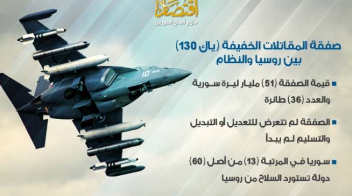 بالعودة إلى مصادر صحفية روسية تبين إن العقود التي يتحدث عنها إيسايكين تمت قبل سنة تقريباً، وتحديداً في كانون الثاني / يناير2012 وتتضمن شراء طائرات حربية-تدريبية نوع (yak 130) بقيمة 550 مليون دولار(يعادل 51 مليار ليرة سورية وفق سعر صرف الدولار في الأسواق الخارجية اليوم)، ما يكفي لشراء نحو 36 طائرة، قيمة الطائرة الواحدة نحو 15 مليون دولار بحسب السعر المعلن في الصحافة الروسية.