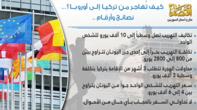 • تكاليف التهريب من تركيا أيضاً أكبر بكثير مما لو كانت من اليونان، حيث تصل وسطياً إلى 10 آلاف يورو للشخص الواحد، وقد تعرفنا على من دفع 13 ألف يورو للشخص الواحد عن كل فرد من أفراد عائلته الخمسة حتى تمكن من الوصول إلى هولندا من إسطنبول وبعد عدة محاولات فاشلة.