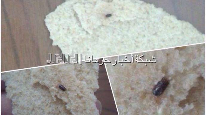 تناقلت صفحات التواصل الاجتماعي الموالية للنظام صوراً لأرغفة خبز ملأى بالحشرات قالت أنها من إنتاج فرن جرمانا الآلي بالقرب من دمشق.