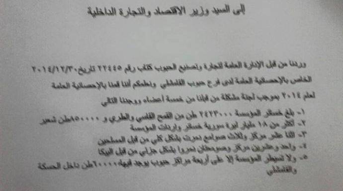 تداول نشطاء وثيقة رسمية تفيد بأن حكومة النظام خسرت ما يقارب 2.5 مليون طن من القمح في محافظة الحسكة وحدها.