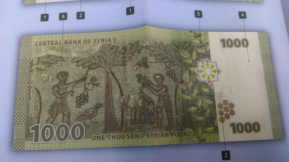 نشرت وسائل إعلام وصفحات "تواصل اجتماعي" الصور الأولى لورقة الـ 1000 ليرة الجديدة، حيث أُزيلت صورة حافظ الأسد من الورقة الجديدة، وظهر مكانها مدرج بصرى الشام، الخاضع حالياً لسيطرة الجيش الحر.