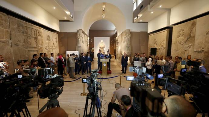 وقال السفير الأمريكي لدى العراق ستوارت جونز "قائمة فظائع داعش وجرائمها طويلة، وتشمل سرقة تهريب تراثكم وثقافتكم. داعش تسرق الآثار ونحن نعيدها لكم."