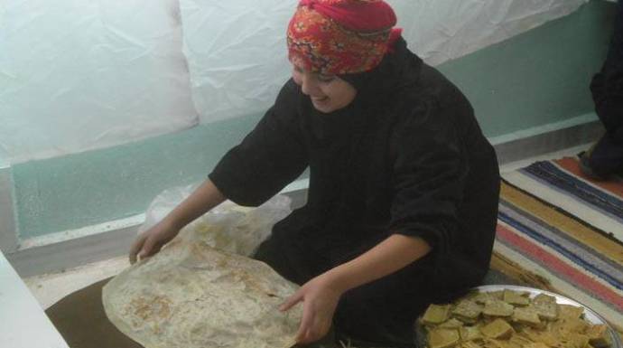 وقالت الحاجة فاطمة العبود، /60/ عاماً، "إن أهم ما نحضره من أكلات وحلويات للعيد, هو المعمول والغريبة وخبز/العيد/، الذي لا نشعر بقيمة العيد بدونه, وهو عبارة عن خبز يتم خبزه بواسطة قالب خاص ثم يدهن بزيت الزيتون ويقدم ساخناً لأهل البيت أو الضيوف"، لافتة إلى اللمّة والتعاون بين جميع نساء الأسرة لإنجاز هذه المأكولات، حيث يتشارك الجميع العمل لإنجازها.