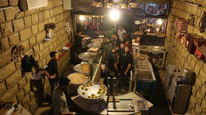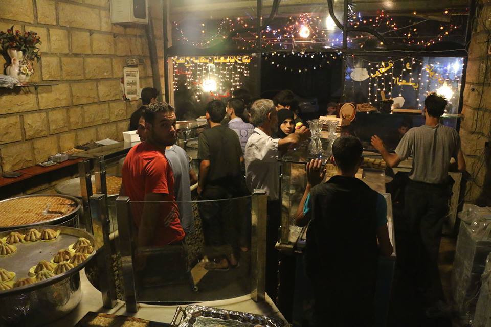 إلا أن ذلك لم يمنع أهالي الغوطة من ارتياد محال صناعة الحلويات وبيع الألبسة والأحذية.