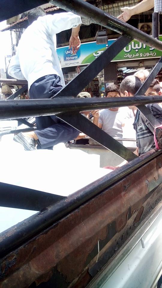 نشرت صفحة "أسواق سوريا...أسعار كل شيء" في "فيسبوك"، صورتين لازدحام على سيارة تبيع ألواح "بوظ" في منطقة المرجة بقلب دمشق.