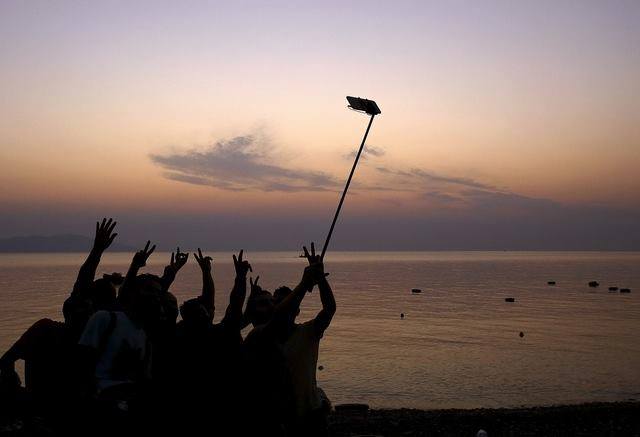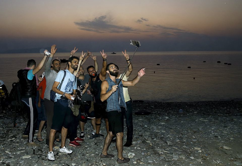نشرت وكالة الأنباء الفرنسية ثلاثة صور للاجئين سوريين بعد وصولهم باستخدام زورق مطاطي إلى شاطئ في جزيرة كوس اليونانية، بعد عبور جزء من بحر إيجة من تركيا. والتقط اللاجئون بعض الصور على هيئة "سيلفي" احتفالاً بوصولهم الناجح في أولى مراحل هجرتهم إلى أوروبا الغربية.