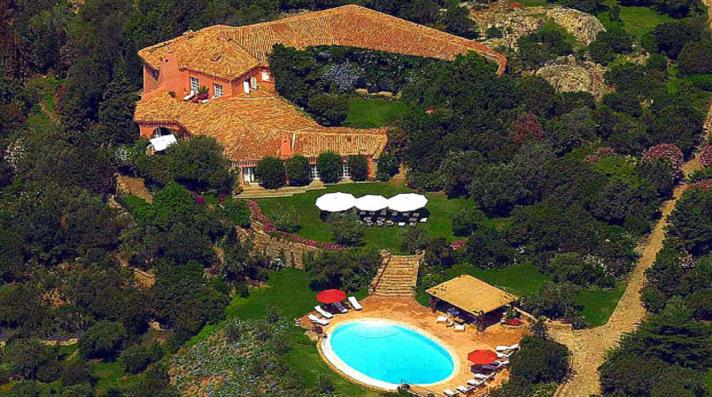 والقصر مؤلف بحسب صحيفة "تليغراف" البريطانية من 68 غرفة، وأحواض للسباحة، وحديقة ضخمة، و68 بركانا اصطناعيا لترفيه الضيوف... إلى جانب مغارة تمر فيها المياه، وتصل من خلال أنفاق خفية إلى بحر سردينيا مباشرة.