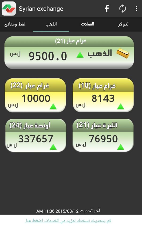 وكان الدولار ارتفع بدمشق، أمس الثلاثاء، 4 ليرات، دفعة واحدة. كما ارتفع سعر الذهب عالمياً بنسبة 0.8%.