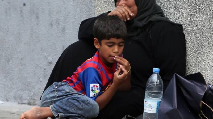 وأظهر شريط فيديو بثه مركز حلب الإعلامي AMC المرأتين وهما تقفان على ناصية أحد الشوارع في حي طريق الباب، وقد أمسكتا بقطع من البسكويت تبيعانها وتقول إحداهما للشخص الذي يصورهما: "والله واقفة عم بيع بسكويت مشان أعيش"، وتضيف: "أرملة ومالي حدا...فقرا"، وتكرر الكلمة الأخيرة ثلاث مرات، ثم تتابع: "مافي شغل وبركت– جلست- هون أبيع بسكويت مشان أعيش".