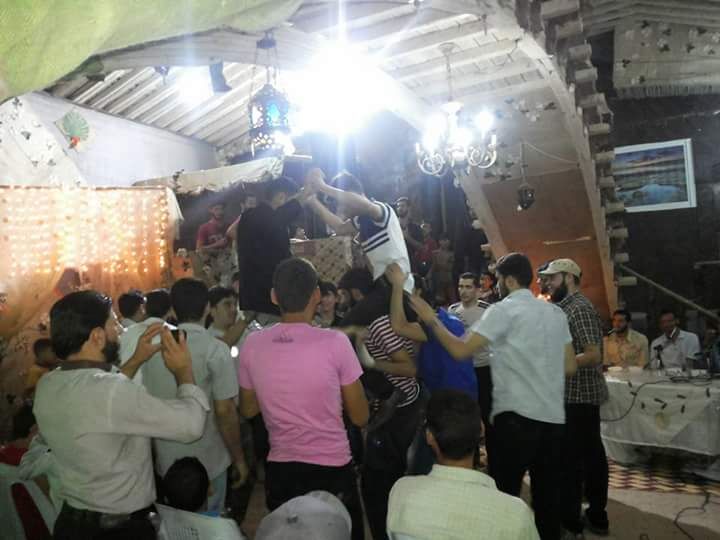ويضيف: "كانت الصعوبات كبيرة جداً، ومعظمها جاء بسبب الحصار المفروض على مدينة المعضمية منذ أشهر، لكننا كسرنا حاجز الحصار، حيث اتفقنا مع إحدى فرق الإنشاد على إحياء الحفل، واستطعنا أن نصنع بوظة للضيافة في ظل هذا الحصار".