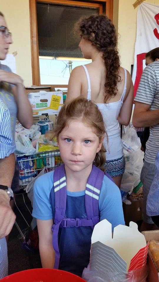 وتُظهر صورة أخرى طفلة نمساوية توزع الطعام والشراب على اللاجئين السوريين.