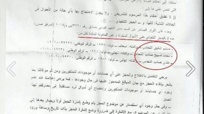 آخر مؤشرات الضغط ظهرت باتجاه الحجز على أموال رجال الأعمال، "صائب النحاس" واثنين من أولاده، بعد مخاطبة وزارة العدل في حكومة النظام مصرف النظام المركزي والذي بدوره وجه كتاباً للمصارف العامة والخاصة يقضي بالحجز التنفيذي على الأموال المنقولة وغير المنقولة وذلك تنفيذاً للقرار.