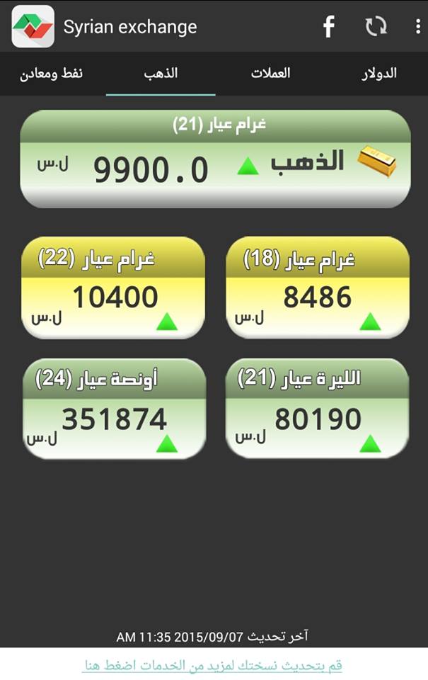 وفيما يلي أسعار أوزان الذهب حسب "سيرياستوكس":