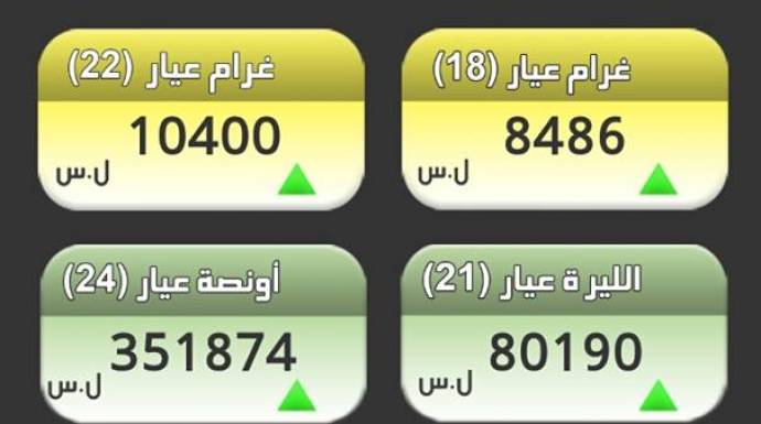 وارتفع الذهب ليصبح بـ 9900 ليرة لغرام الـ 21، بزيادة 100 ليرة، و8486 ليرة لغرام الـ 18.