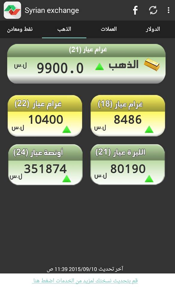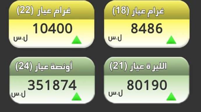 وفيما يلي أسعار أوزان الذهب حسب "سيرياستوكس":