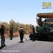 وعلى مدى أسابيع من العمل المضني كانت سيارات يبلغ طول رتلها عشرة أمتار، تنقل مواد التعبيد، حيث تقوم ورشات العمل التابعة للجبهة الشامية باستعمالها، ليبلغ طول ما أنجز تعبيده 10 كيلو مترات.