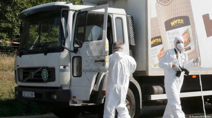 وقالت سلطات المدينة "حوالى الساعة الثامنة (6,00 تغ) من اليوم توقف سائق شاحنة فجأة لسبب مجهول وقام بفحص حمولته واكتشف وجود مهاجر متوف في شاحنته بسبب سقوط الواح خشبية فوقه على الارجح".
