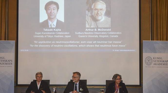 فاز الياباني تاكاكي كاجيتا، والكندي آرثر مكدونالد، اليوم الثلاثاء، في السويد، بجائزة نوبل للفيزياء مناصفة لعام 2015.