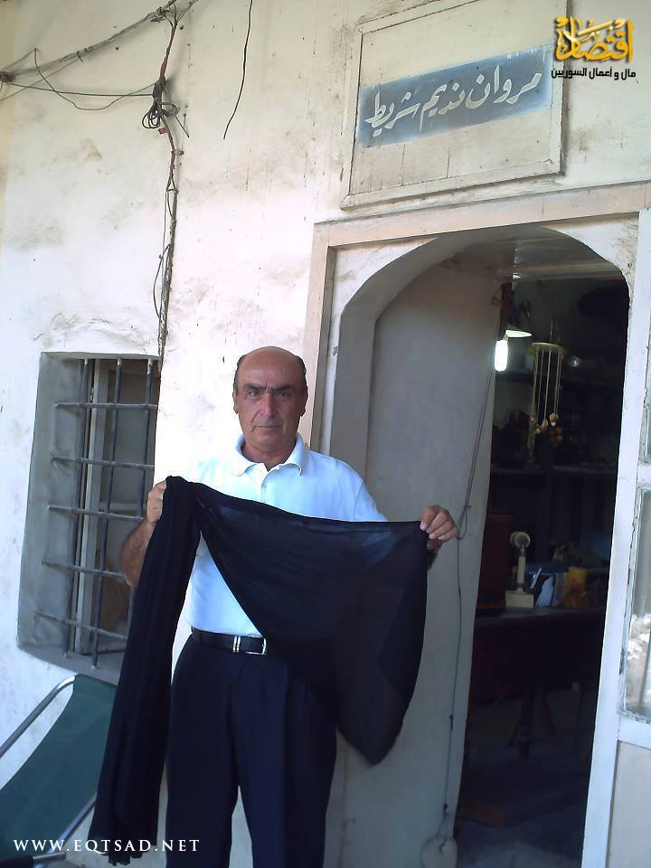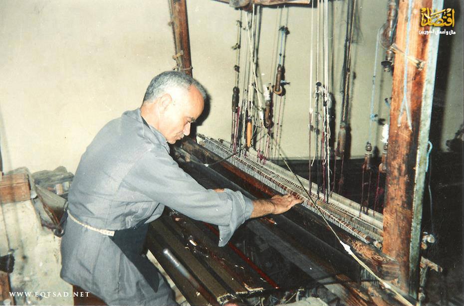 (النساج مروان شريط الذي ينتمي لأقدم عائلة زاولت النسيج في حمص)