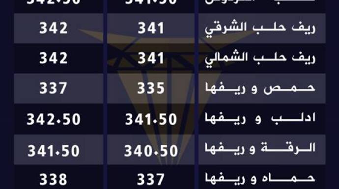 وفيما يلي قائمة بأسعار الدولار في المحافظات السورية، حسب "قناة البورصة السورية الفضائية":
