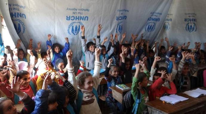 وبحسب القائمين على المدرسة فإن مفوضية اللاجئين التابع للأمم المتحدة زودت المدرسة بالستائر البلاستيكية وبعض المستلزمات الدراسية.