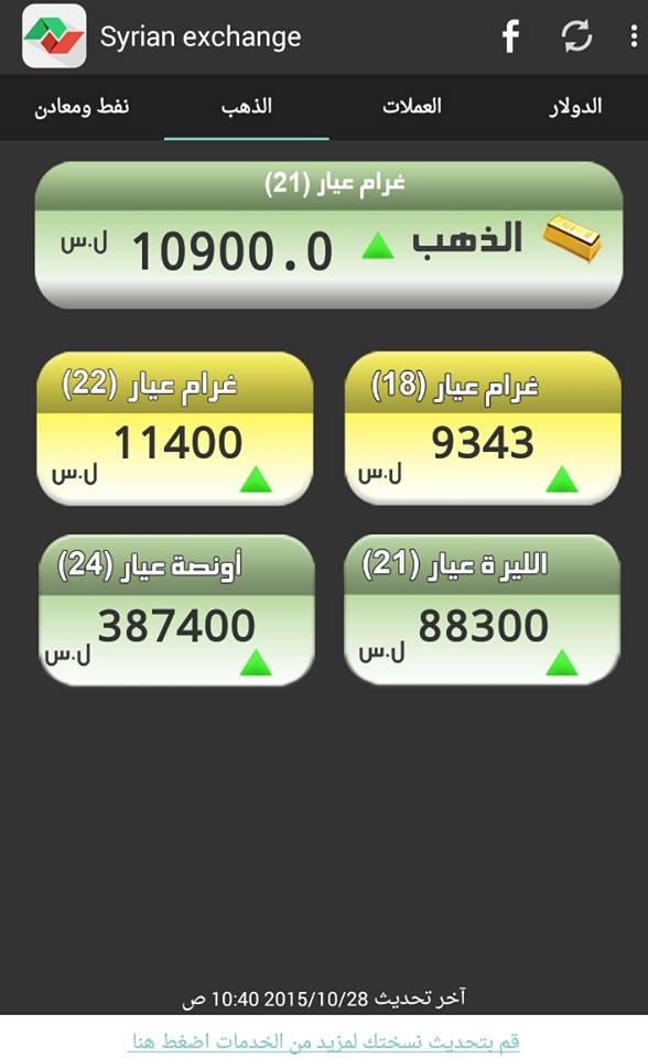 وكان الذهب وصل الثلاثاء من الأسبوع الفائت إلى أعلى سعر سجله في تاريخ سوريا، لكنه اليوم الأربعاء، سجل سعراً جديداً أعلى.