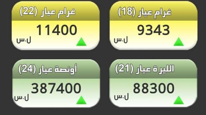 وارتفع الذهب ليصبح بـ 10900 ليرة لغرام الـ 21، بزيادة 100 ليرة، و9343 ليرة لغرام الـ 18.
