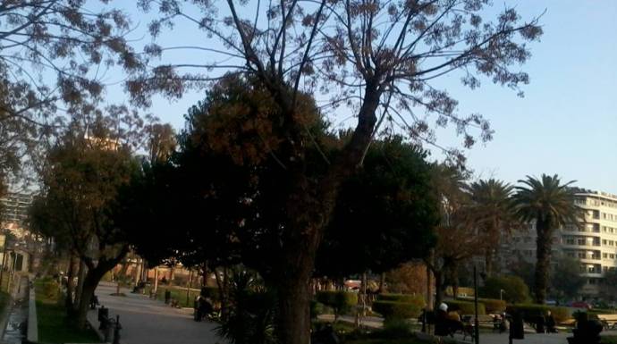 هي دمشق، كرة نار مشتعلة، وخرائب تحيط بها من كل الجهات، الجهات الأربع المدمرة من هول حمم الطائرات التي تقصفها منذ خمس سنوات، وحولت سياجها الأخضر إلى كومة اسمنت محطمة بينما ما زالت أحياؤها المنتصبة استثماراً كبيراً للعصابات التي تسكن المؤسسات، وتلك الني تركب الأسلحة، وتطرد أهلها إلى الشتات.