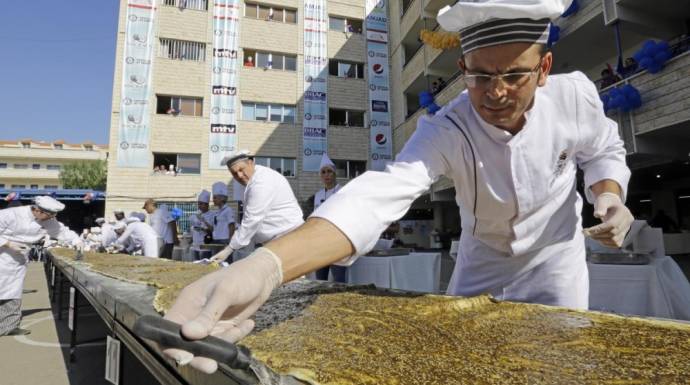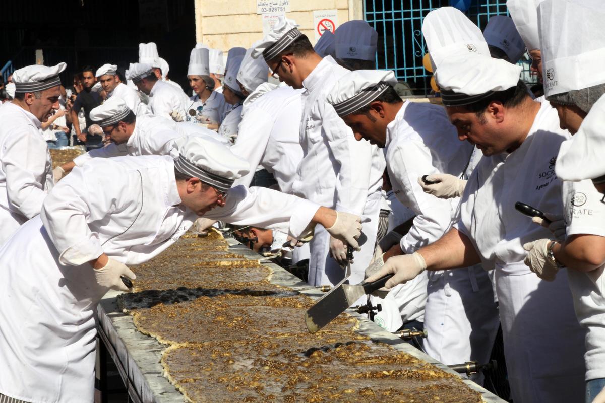 وبدأ تحضير المنقوشة في مدرسة "أمجاد"، بمنطقة الشويفات، جنوبي العاصمة بيروت، بحضور حشد من الطلاب وأهاليهم، وعدد من الصحفيين، ليكتمل الحدث في أقل من ساعتين.