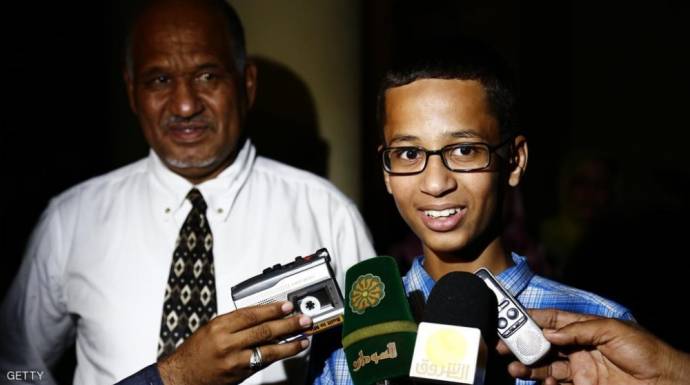 وكان احمد محمد (14 عاما) اوقف لفترة قصيرة في ايلول/سبتمبر الماضي بعدما احضر الى المدرسة جهازا "ابتكره" كان ساعة حائط تتألف من شاشة رقمية صنعها ليثير اعجاب استاذه بمادة التكنولوجيا. واعتقد احد المدرسين ثم الشرطة ان الجهاز قنبلة.