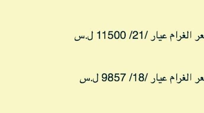 وأصبح غرام الـ 21 ذهب، بـ 11500 ليرة، بتراجع 200 ليرة، فيما أصبح غرام الـ 18 ذهب بـ 9857 ليرة.