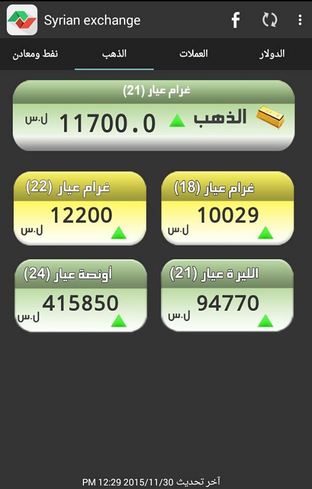 وفيما يلي أسعار أوزان الذهب بسوريا، حسب "سيرياستوكس":