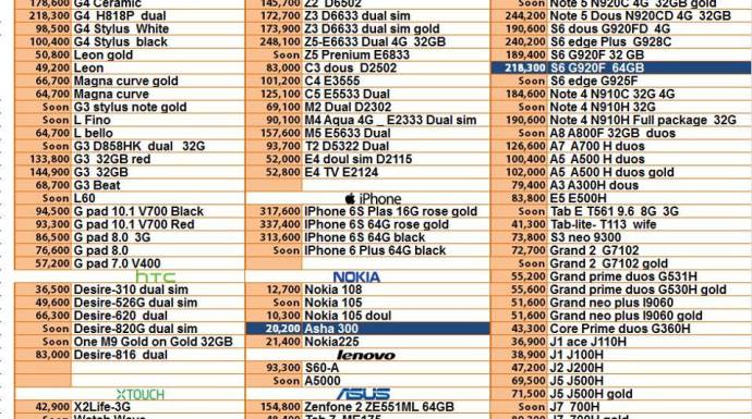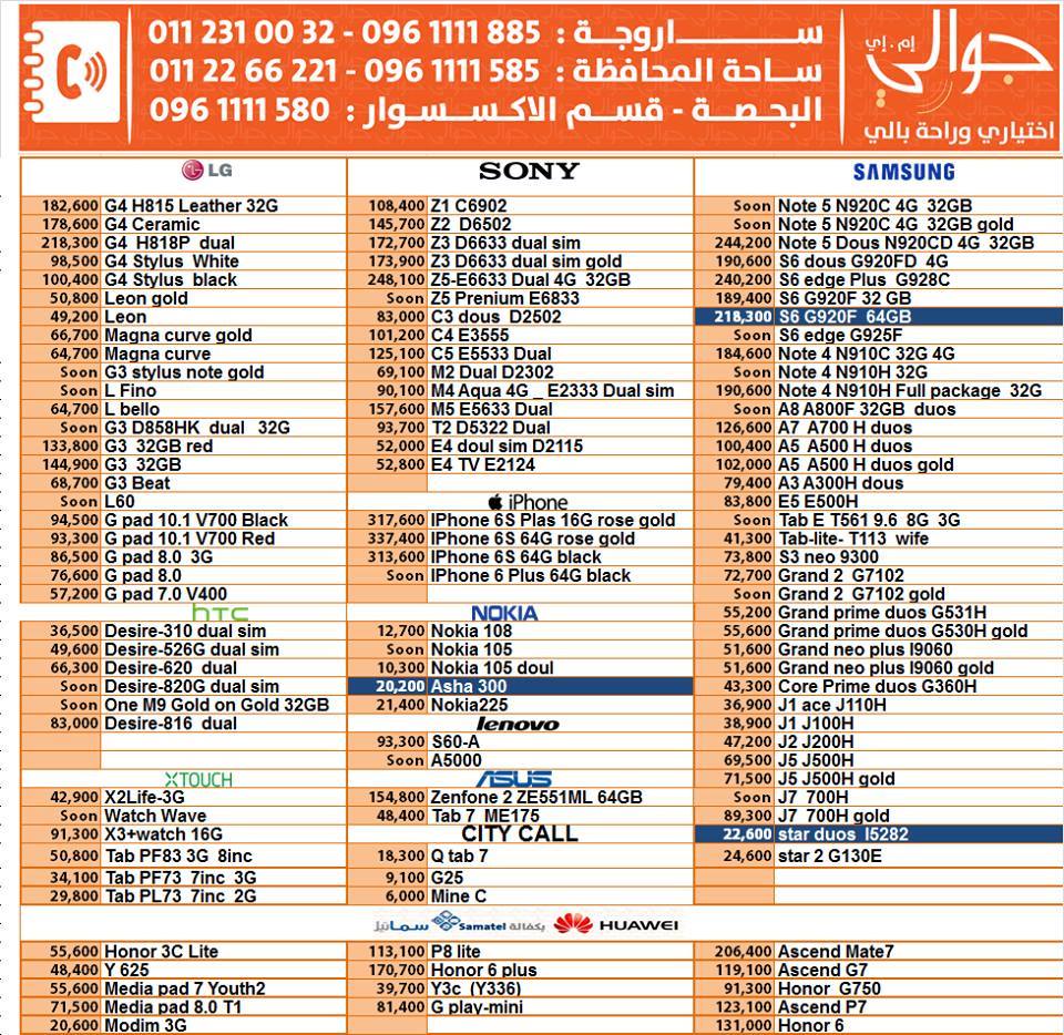 نشرت صفحة "أسواق سوريا.. أسعار كل شيء" في "فيسبوك"، نشرة لأسعار الموبايلات، اليوم الخميس، بدمشق، صادرة عن إحدى الشركات المعنية بتجارة الموبايلات والاتصالات وما يتصل بهما.