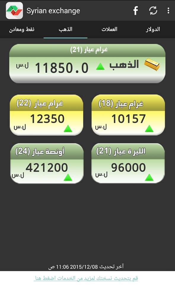 وفيما يلي أسعار أوزان الذهب في سوريا، أمس واليوم، حسب "سيرياستوكس":