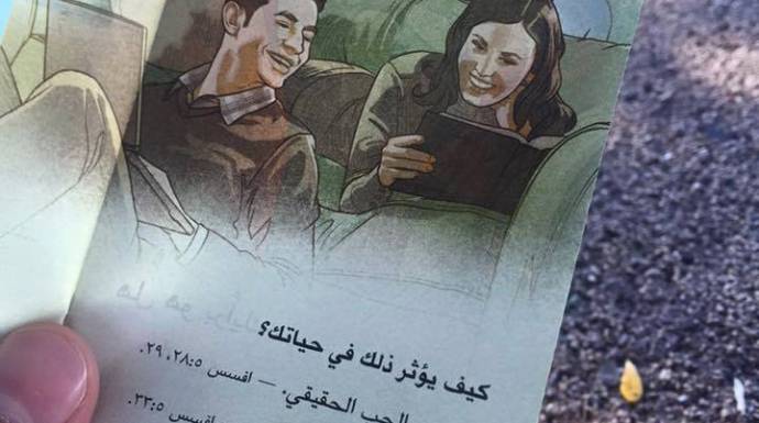 حصل "اقتصاد" على كتيبات "تبشيرية" توزعها جماعة "شهود يهوه" المسيحية على اللاجئين في فرنسا، بما فيهم السوريون.