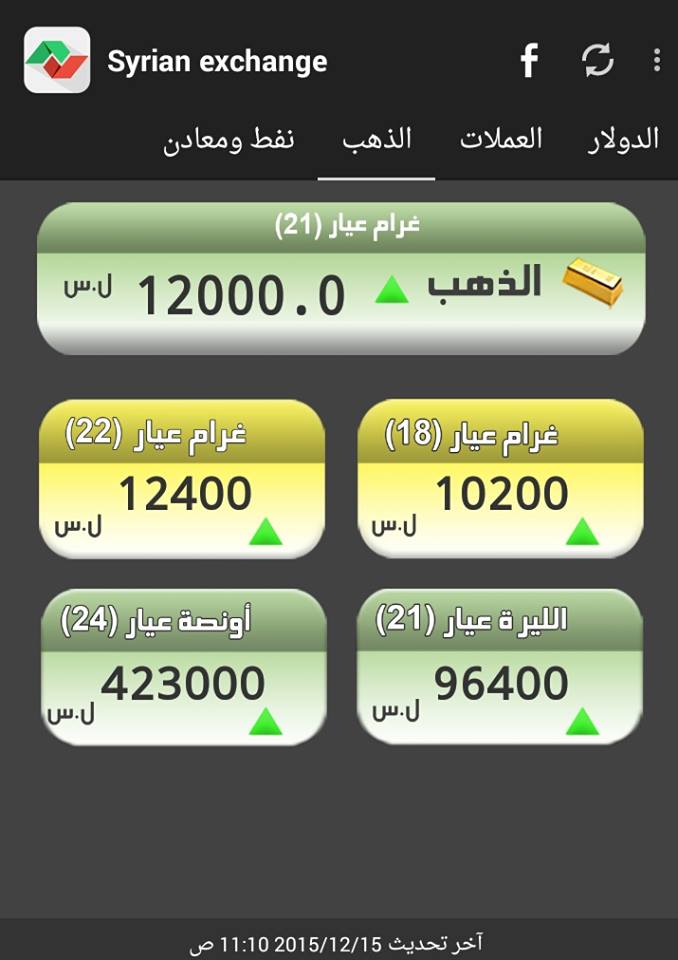 وكان الذهب سجل أعلى سعر له في تاريخ سوريا، يوم السبت.