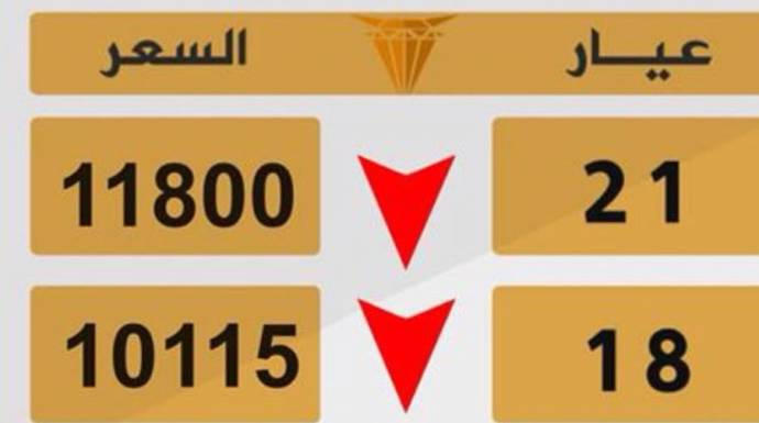 وأصبح غرام الـ 21 ذهب، بـ 11800 ليرة، فيما أصبح غرام الـ 18 بـ 10115 ليرة.