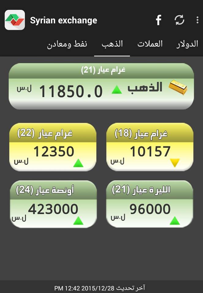 في أول يوم عمل لها بعد عطلة عيد الميلاد، أعلنت جمعية الصاغة بدمشق رفع سعر الذهب، 50 ليرة لغرام الـ 21.