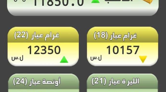 وسجل الذهب بدمشق، اليوم الاثنين، 11850 ليرة لغرام الـ 21 ذهب، بزيادة 50 ليرة، فيما أصبح غرام الـ 18 بـ 10157 ليرة.
