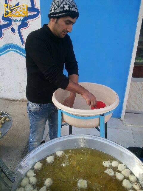 مستشهداً بقوله تعالى "كل الطعام كان حلاً لبني إسرائيل، إلا ما حرم إسرائيل على نفسه"، يبرر أبو حسين موقفه بتحريم كل أنواع الحلوى على نفسه إلى أن يعود لأرض حيه الغالي حي الميدان، ويعد الشعب اللبناني بحلويات جديدة يحضر لها الآن ومصنوعة من مادة عجينة "المعكرونة"، هذه المادة التي يجمعها من المخيمات السورية والتي تأتيهم عبر كراتين المساعدات، وتزيد عن حاجتهم اليومية.