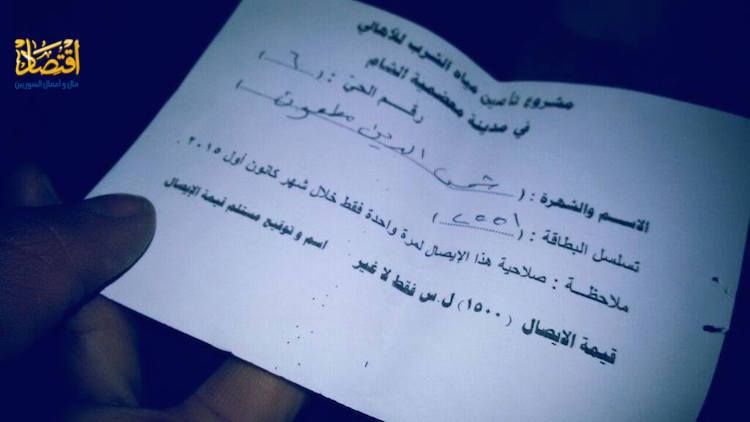 دخل أحمد (22 عاماً) إلى أحد مراكز مشروع تأمين مياه الشرب، ليستلم وصلاً يمكنه من شراء 5 براميل من أي صهريج يستوقفه في الشارع.