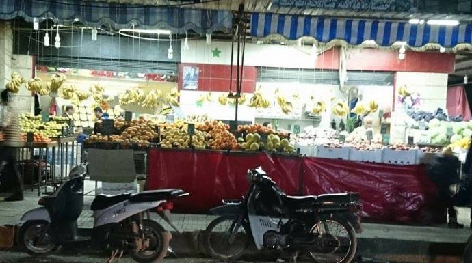 وبحسب ريم، وهي ناشطة من مدينة جبلة، فإن أسعار السلع والخضروات والفواكه ربما تتفاوت قليلاً من محل إلى آخر أو من بسطة إلى أخرى، فالموز وصل إلى 450 ليرة، والتفاح الجيد 300 ليرة، والبندورة 375 ليرة، والخيار 350 ليرة، وكيلو الملفوف 75، وباقة البقدونس 50، والباذنجان 400 ليرة، والبطاطا 150 ليرة.