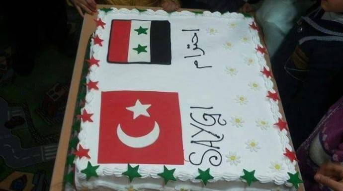 ويضيف حمدان، "أعضاء الجمعية التركية طلبوا من صانع الحلويات إعداد قالب من "الكاتو" مزين بالعلمين السوري والتركي، فما كان من صانع الحلويات التركي لجهله بالحالة السورية، إلا الاستعانة بمحركات البحث على "الانترنيت" للتعرف على العلم السوري، ولأن محركات البحث، تعتمد علم النظام كعلم رسمي للبلاد، وقع هذا الخطأ".
