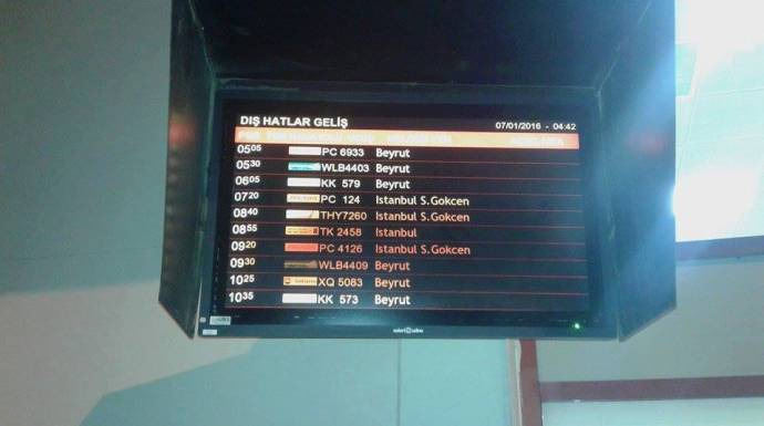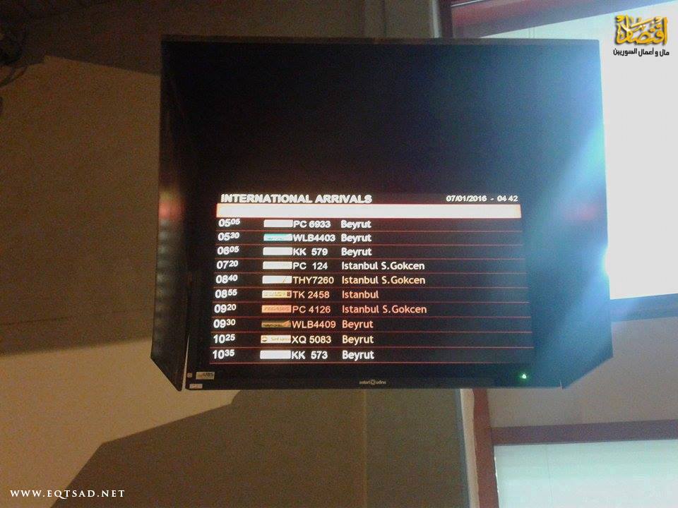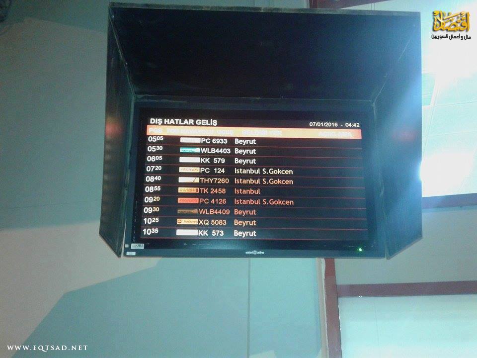 وقد رصد مراسل "اقتصاد" في اللوحة الالكترونية الموجود في مطار أضنة ست رحلات قادمة من مطار بيروت في يوم الخميس 7/1/2016، قبل سريان شرط الفيزا.