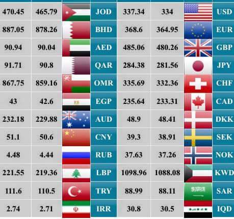 وفيما يلي قائمة بأسعار صرف كافة العملات العربية والأجنبية، اليوم الأحد، حسب مصرف سوريا المركزي: