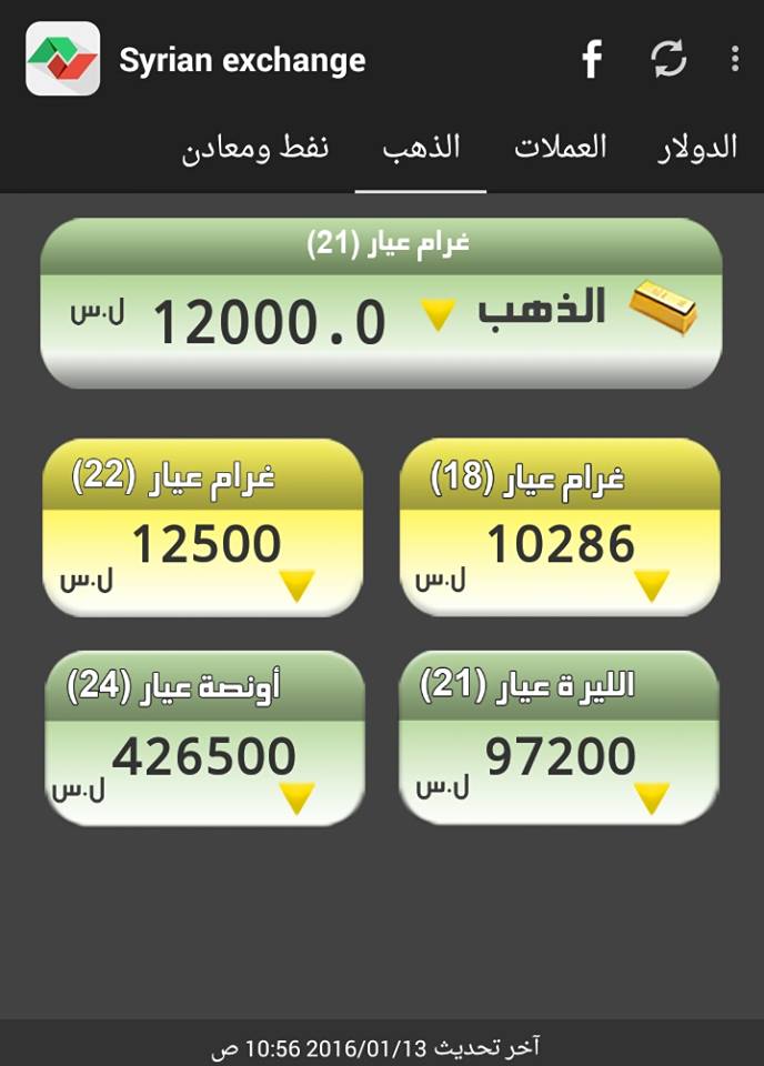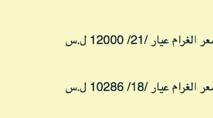 وحسب جمعية الصاغة بدمشق، أصبح غرام الـ 21 ذهب، عند 12000 ليرة، فيما أصبح غرام الـ 18 عند 10286 ليرة.