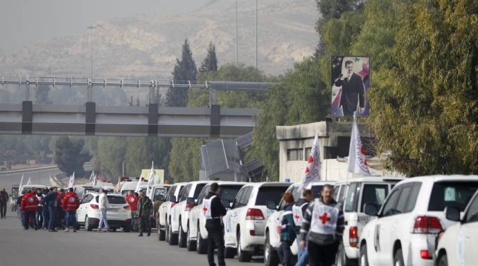 وذكر عاملو إغاثة محليون أن 32 شخصا ماتوا من الجوع خلال الشهر الماضي ووصلت الأسبوع الماضي قافلتان من إمدادات الاغاثة إلى 42 ألف شخص يعيشون في البلدة المحاصرة منذ شهور.