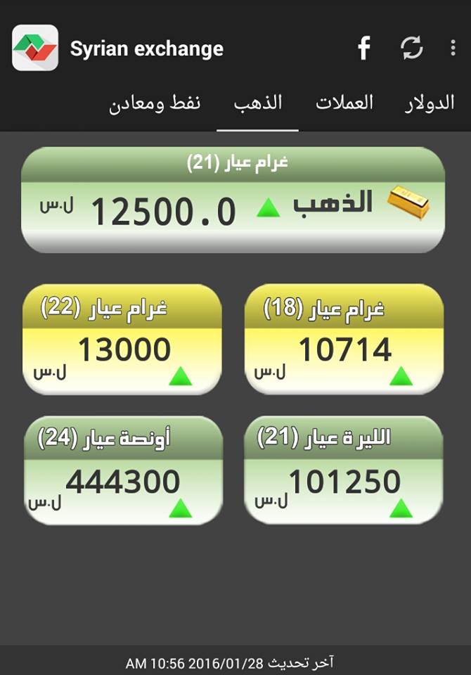 وكان الذهب سجل أمس الأربعاء، 12500 ليرة لغرام الـ 21، و 10714 ليرة لغرام الـ 18، وهو أعلى سعر سجله الذهب في تاريخ سوريا حتى اليوم.