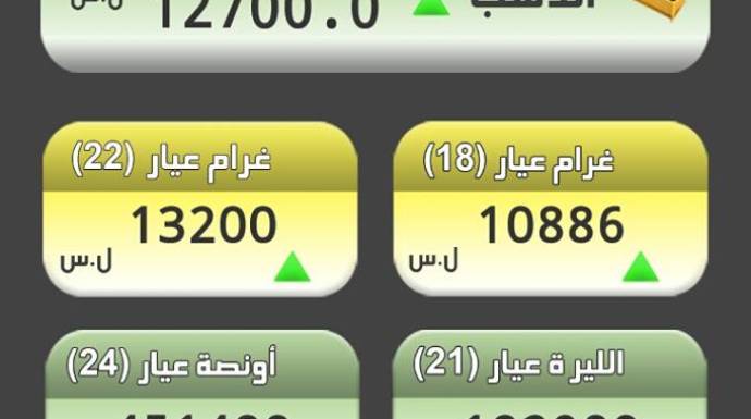 وبعد يومين فقط من تسجيل سعر قياسي جديد، سجل الذهب، اليوم الاثنين، قفزة جديدة، ليصبح غرام الـ 21 ذهب، بـ 12700 ليرة، بزيادة 100 ليرة، فيما أصبح غرام الـ 18 بـ 10886 ليرة.